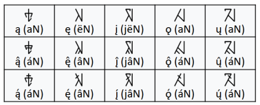 | *ą *ǫ *ų | áN | — | aN |